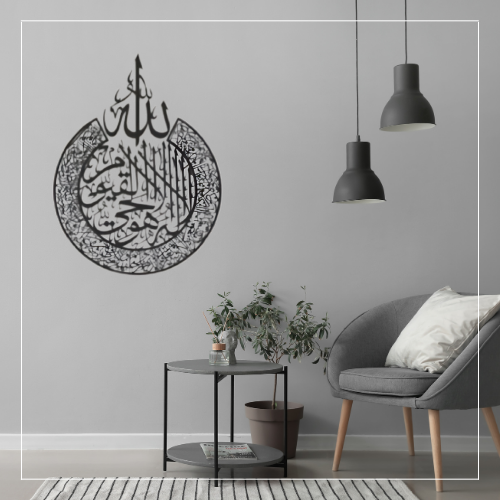 Bring peace and protection into your home with this Round Ayat-ul-Kursi Islamic Calligraphy Wall Art, featuring a beautiful separate "Allah" calligraphy piece placed at the top center. This unique layout highlights the divine name while maintaining the circular elegance of Ayat-ul-Kursi, one of the most powerful and spiritually significant verses in the Quran.